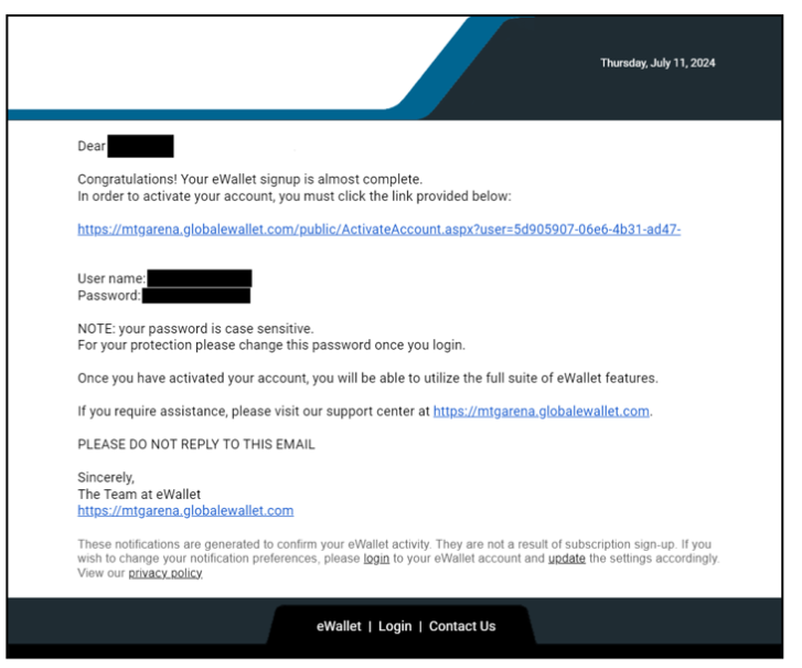 If you do not have an iPayout account setup for Arena Direct, you will receive an email from mtgarena@globalewallet.com with your account creation details. This step can take 5-7 days after the event is over to complete (which leaves plenty of time to complete the process before Prize Emails are generated).